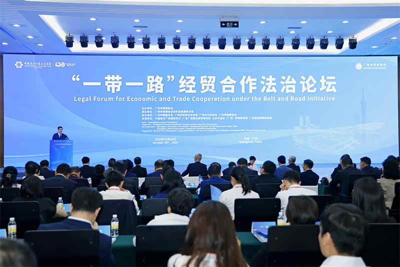 10月26日,第138屆廣交會期間的重要法治盛會——“一帶一路”經(jīng)貿(mào)合作法治論壇在廣州圓滿落幕。本屆論壇聚焦國際經(jīng)貿(mào)結(jié)構(gòu)重塑下的法治保障與制度創(chuàng)新,匯聚全國26個省市律師協(xié)會代表、70余家企業(yè)代表及政府部門、高校智庫、港澳地區(qū)等海內(nèi)外近300名嘉賓,深度探尋“展會+法治”融合新路徑,為“一帶一路”高質(zhì)量發(fā)展注入廣州智慧與法治動能。廣州市委政法委主要負責(zé)人和中國對外貿(mào)易中心相關(guān)負責(zé)同志出席論壇并致辭。