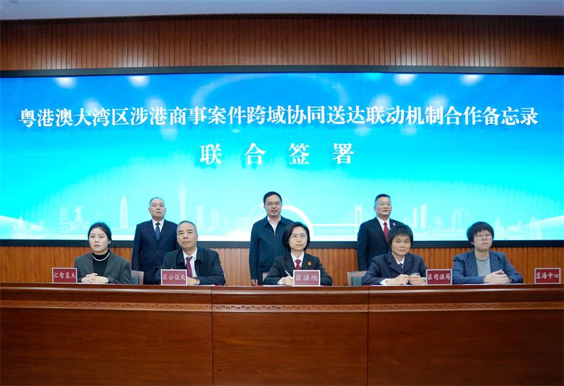 潮涌珠江,灣區(qū)同心。12月17日上午,廣東省廣州市南沙區(qū)人民法院(廣東自由貿(mào)易區(qū)南沙片區(qū)人民法院)攜手廣州市南沙區(qū)司法局、廣州市南沙公證處、深圳市藍(lán)海法律查明和商事調(diào)解中心、廣州市匯智藍(lán)天國際法律與商事服務(wù)中心暨“一帶一路”域外法查明(廣州)中心,共同簽署《關(guān)于構(gòu)建粵港澳大灣區(qū)涉港商事案件跨域協(xié)同送達(dá)聯(lián)動機制合作備忘錄》(以下簡稱《備忘錄》)。