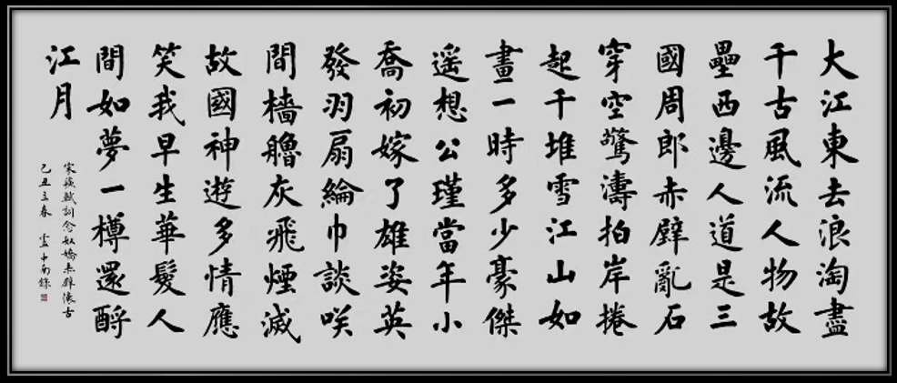盧中南先生能夠從古法中孕育新知,推陳出新,將歐楷的險絕化為溫潤,在傳承中不斷創(chuàng)新,形成了雄強(qiáng)厚重、磅礴大氣的個人風(fēng)格。