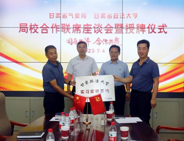 7月4日,甘肅政法大學與甘肅省氣象局共建實習實訓基地、氣象科普基地掛牌儀式舉行。甘肅政法大學黨委委員、副校長史玉成與甘肅省氣象局黨組成員、副局長陶健紅出席掛牌儀式。