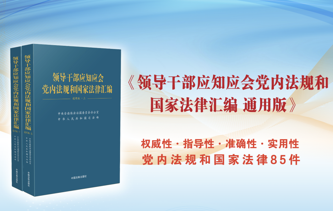 為更好貫徹落實(shí)《意見》部署要求,中央依法治國(guó)辦、司法部編輯了《領(lǐng)導(dǎo)干部應(yīng)知應(yīng)會(huì)黨內(nèi)法規(guī)和國(guó)家法律匯編 通用版》(以下簡(jiǎn)稱 《匯編》),供各級(jí)領(lǐng)導(dǎo)干部學(xué)習(xí)使用?!秴R編》重點(diǎn)圍繞領(lǐng)導(dǎo)干部“應(yīng)知應(yīng)會(huì)”這一基本要求,聚焦領(lǐng)導(dǎo)干部在工作中應(yīng)當(dāng)學(xué)習(xí)掌握的黨內(nèi)法規(guī)和國(guó)家法律,共收錄黨內(nèi)法規(guī)和國(guó)家法律 85 件。黨內(nèi)法規(guī)包括黨章、黨的組織法規(guī)、黨的領(lǐng)導(dǎo)法規(guī)、黨的自身建設(shè)法規(guī)、黨的監(jiān)督保障法規(guī)五個(gè)方面;國(guó)家法律包括憲法及憲法相關(guān)法、國(guó)家安全法律、推動(dòng)高質(zhì)量發(fā)展相關(guān)法律、民法典、刑法和公職人員政務(wù)處分法、行政法律、其他法律法規(guī)七個(gè)方面?!秴R編》收錄的均為現(xiàn)行有效且向社會(huì)公開發(fā)布的黨內(nèi)法規(guī)和國(guó)家法律的標(biāo)準(zhǔn)文本,注重突出權(quán)威性和準(zhǔn)確性,是各級(jí)領(lǐng)導(dǎo)干部學(xué)習(xí)使用黨內(nèi)法規(guī)和國(guó)家法律的重要工具書。