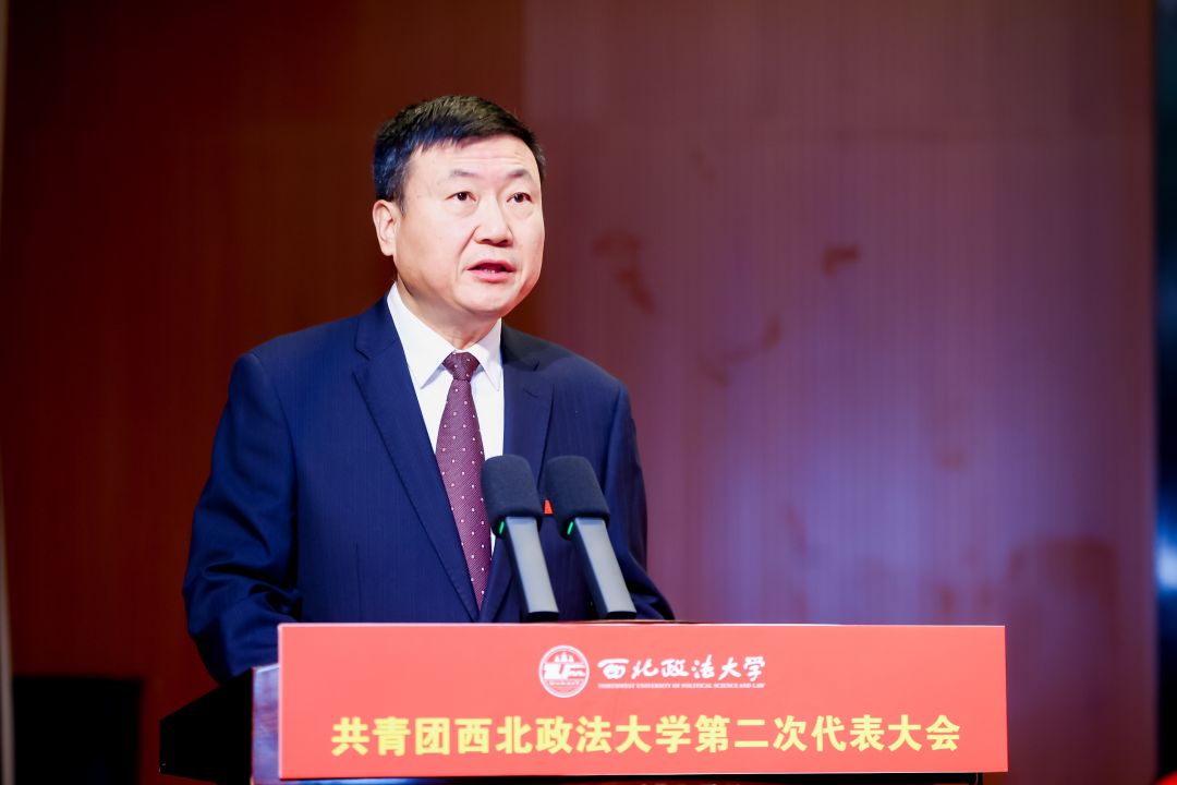 郭武軍代表學(xué)校黨委向大會(huì)的召開表示熱烈祝賀,向長(zhǎng)期以來關(guān)心和支持學(xué)校共青團(tuán)工作的共青團(tuán)陜西省委、省教育團(tuán)工委以及兄弟院校表示感謝,并充分肯定了學(xué)校各級(jí)團(tuán)組織團(tuán)結(jié)帶領(lǐng)廣大團(tuán)員青年取得的成績(jī)和貢獻(xiàn)。他強(qiáng)調(diào)西法大青年要堅(jiān)定理想信念,樹立報(bào)國(guó)之志,以昂揚(yáng)之姿馳騁青春賽道;要傳承紅色基因,涵養(yǎng)浩然之氣,以擔(dān)當(dāng)之勇砥礪前行之路;要勇立時(shí)代前沿,提升創(chuàng)新之能,以進(jìn)取之心探索未知領(lǐng)域;要時(shí)刻牢記以人民為中心,踐行法治精神,在中國(guó)式現(xiàn)代化建設(shè)中挺膺擔(dān)當(dāng)。