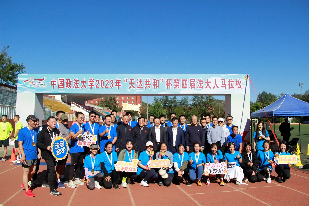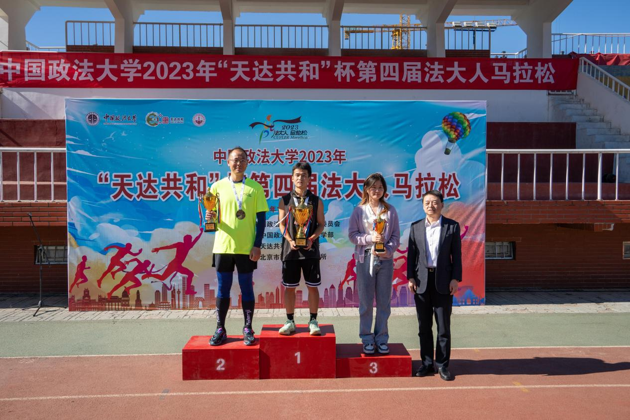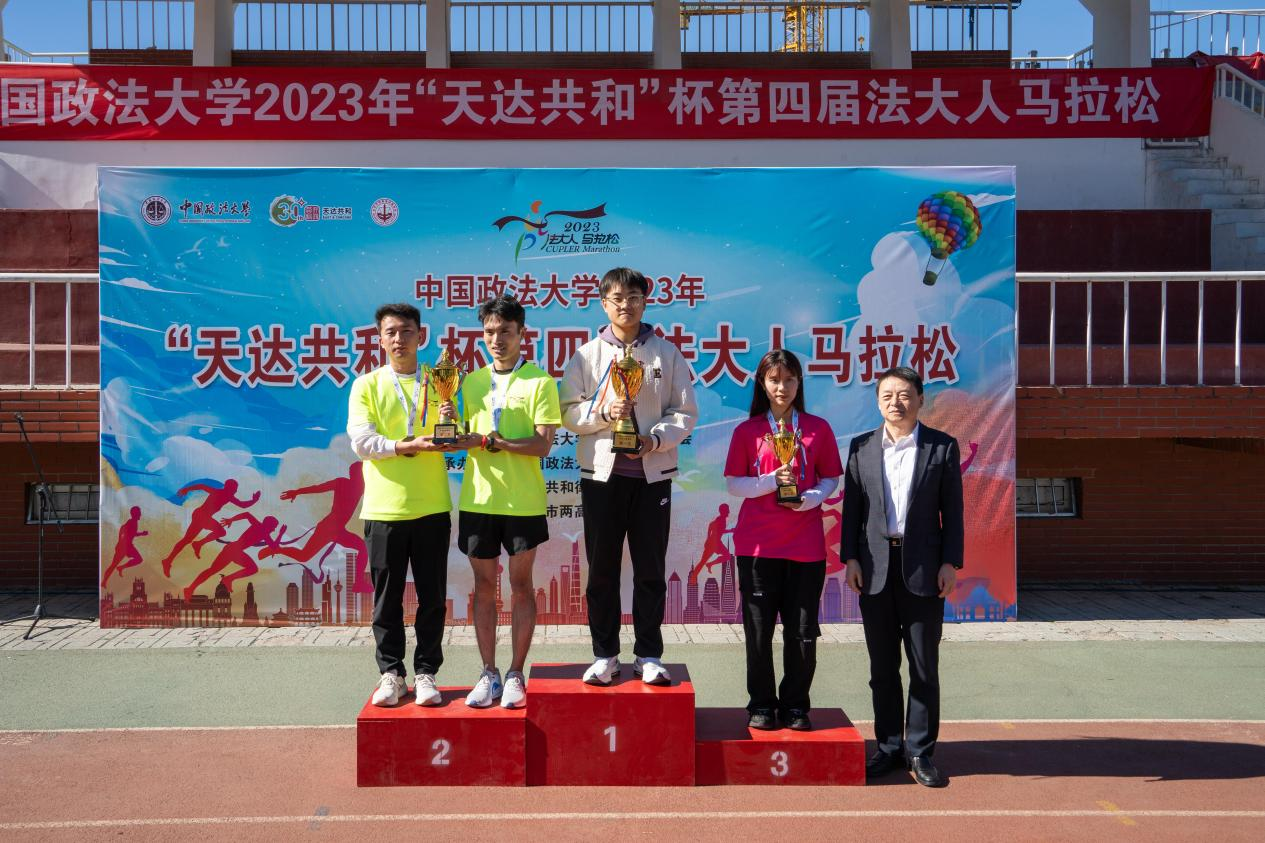 證據(jù)科學研究院研究生王東亞同學在歡呼聲中第一個沖過了終點線。教工朱林、校友蒲彥萍、證據(jù)科學研究院王東亞同學、法學院杜睿思同學分別為第四屆法大人馬拉松教工校友男子組、教工校友女子組、學生男子組、學生女子組冠軍。刑事司法學院、社會學院分獲甲、乙組團體第一。