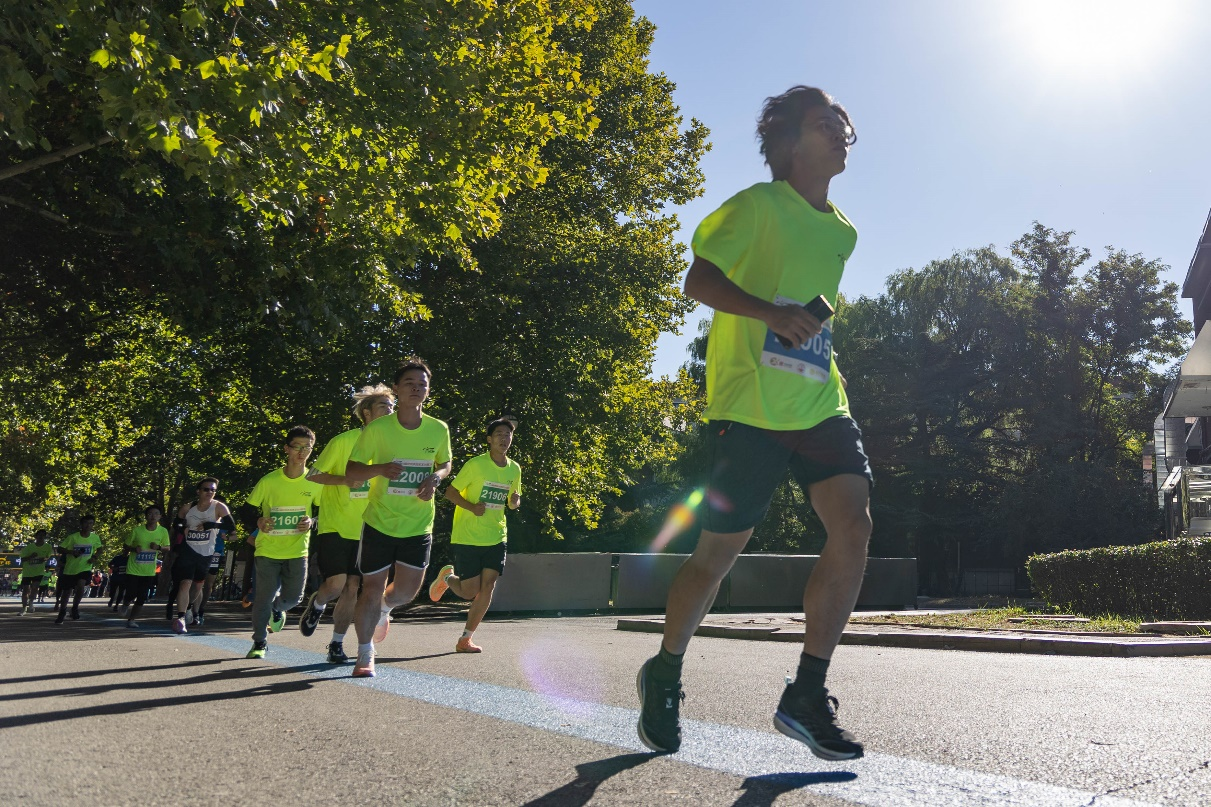 活動現(xiàn)場,“歡迎校友回家”“奔跑吧!法大人”橫幅飄揚,法大人齊聚一堂,共享運動的激情。體育教學部也做了精心的賽事保障,配置了起、終點裁判,長跑線路沿線設置飲水站、校友服務站來幫助參賽者補充體力。比賽還在拓荒牛前設置了手環(huán)領取處,參賽者可自愿領取,計算圈數(shù),為比賽增加了一絲趣味性。