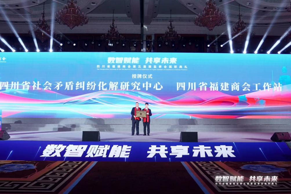 近日,四川省福建商會第五屆理監(jiān)事會就職典禮在成都舉行,新一屆理監(jiān)事會成員集體亮相,新的征程就此揚帆起航。典禮上,四川省福建商會為閩商調(diào)解中心、四川省社會矛盾糾紛化解研究中心四川省福建商會工作站授牌,這意味著四川省福建商會法治保障得到進一步夯實,商會以法治思維引領企業(yè)發(fā)展之路至此踏上了新征程。