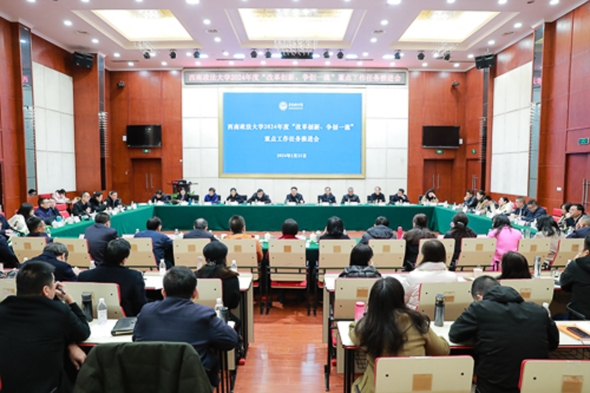 2月23日,西南政法大學(xué)召開(kāi)2024年度“改革創(chuàng)新、爭(zhēng)創(chuàng)一流”重點(diǎn)工作任務(wù)推進(jìn)會(huì),以更加積極主動(dòng)的姿態(tài)、更加奮發(fā)有為的狀態(tài)、更加務(wù)實(shí)高效的作風(fēng),確保學(xué)校在新時(shí)代新征程上謀好篇、開(kāi)好局、起好步,推動(dòng)高質(zhì)量發(fā)展,努力開(kāi)創(chuàng)學(xué)校事業(yè)發(fā)展新局面。
