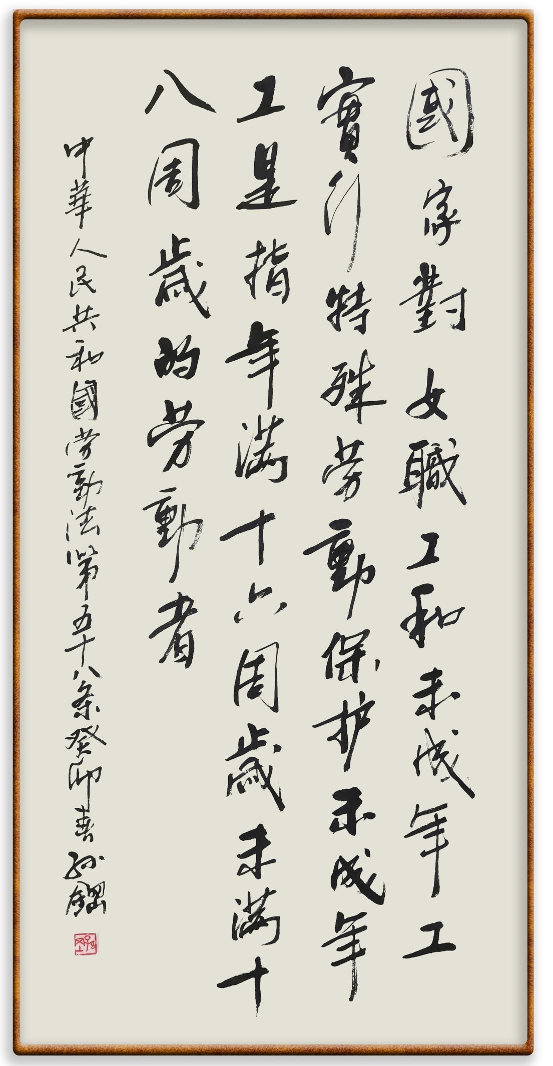 法律,是勞動者奮斗前行的后盾。在“五一”國際勞動節(jié)這個崇尚勞動、贊美勞動者的日子里,“書·法”系列活動邀請書法家及書法愛好者們將筆端對準(zhǔn)《中華人民共和國勞動法》,共同書寫新時代勞動者新的榮光!