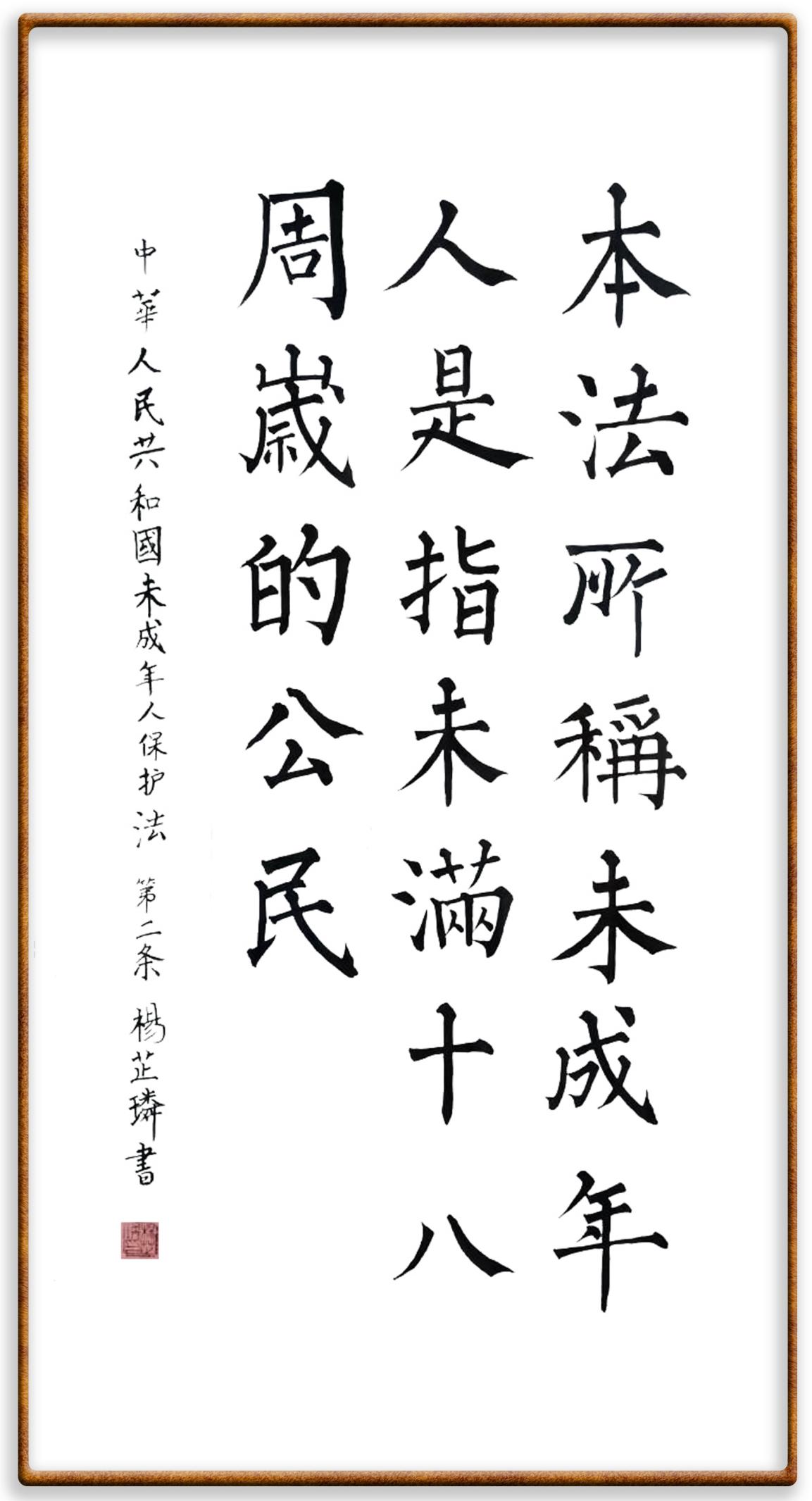 “六一”國際兒童節(jié)來臨之際,法制日報社聯(lián)合(全國)教育書畫協(xié)會基礎(chǔ)書法教育分會,推出“‘書·法’系列活動之書寫《中華人民共和國未成年人保護(hù)法》活動”,邀請小朋友書寫部分法條,讓孩子們在濃濃的節(jié)日氛圍中感受傳統(tǒng)文化的獨特魅力。