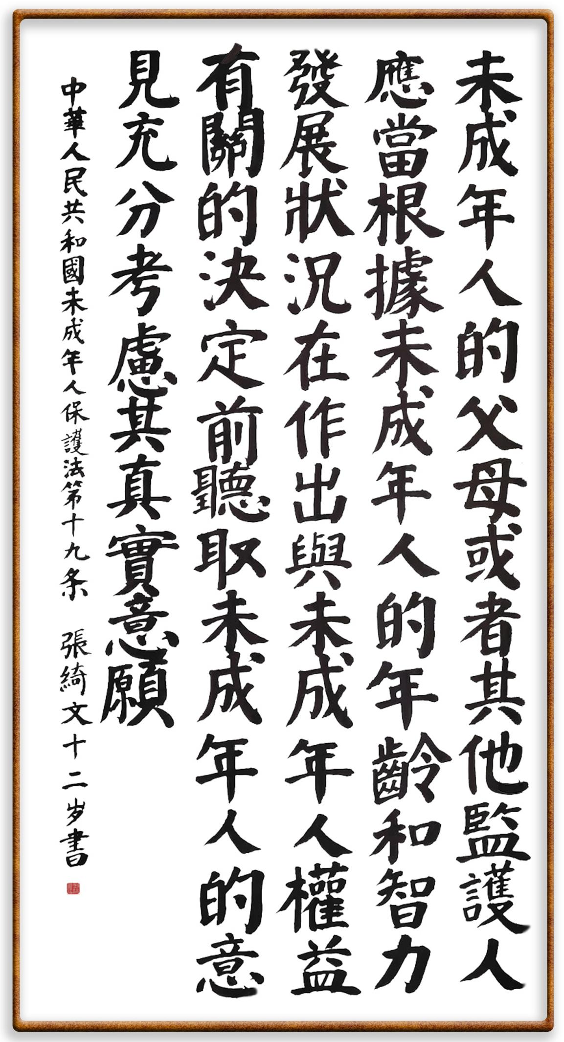 “六一”國際兒童節(jié)來臨之際,法制日報社聯(lián)合(全國)教育書畫協(xié)會基礎書法教育分會,推出“‘書·法’系列活動之書寫《中華人民共和國未成年人保護法》活動”,邀請小朋友書寫部分法條,讓孩子們在濃濃的節(jié)日氛圍中感受傳統(tǒng)文化的獨特魅力。