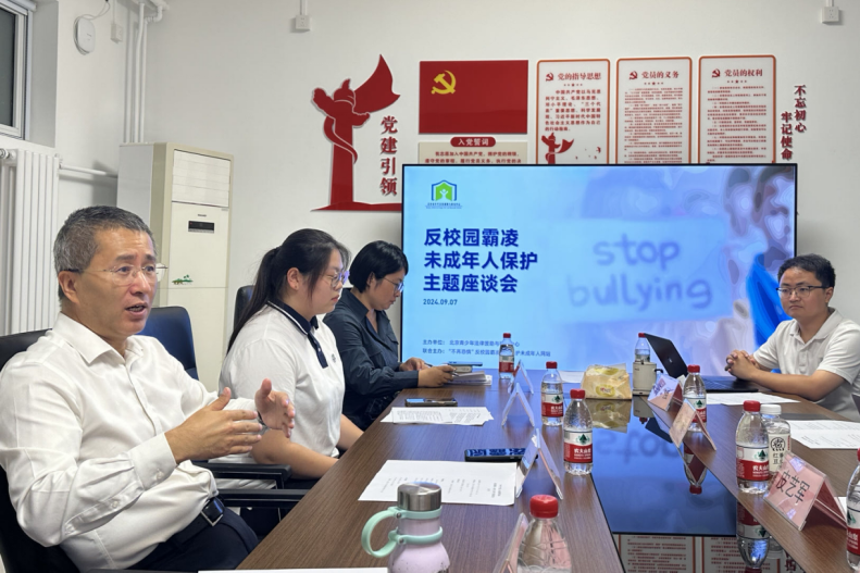 9月7日,以“反校園霸凌 未成年人保護(hù)”為主題的座談會(huì)在北京青少年法律援助與研究中心舉辦。法學(xué)專(zhuān)家、法律援助律師、心理專(zhuān)家、學(xué)生與家長(zhǎng)代表們圍繞校園霸凌行為的危害性、法律救濟(jì)的理論與實(shí)踐,深入交流研討,集實(shí)招、謀良策,引導(dǎo)社會(huì)各界共同守護(hù)青春校園與未成年人健康成長(zhǎng)。