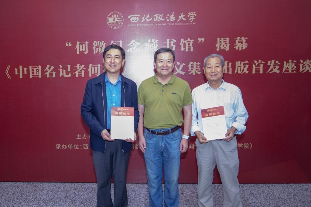 現(xiàn)場,親屬代表張振林捐贈了何微手稿和書籍等一批資料。西北政法大學(xué)為圖書捐贈方人民日報出版社、新華出版社頒發(fā)了捐贈證書。