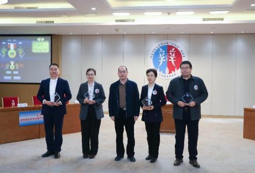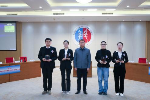 (司法行政學院副院長張俊為團體二等獎頒發(fā)獎杯)