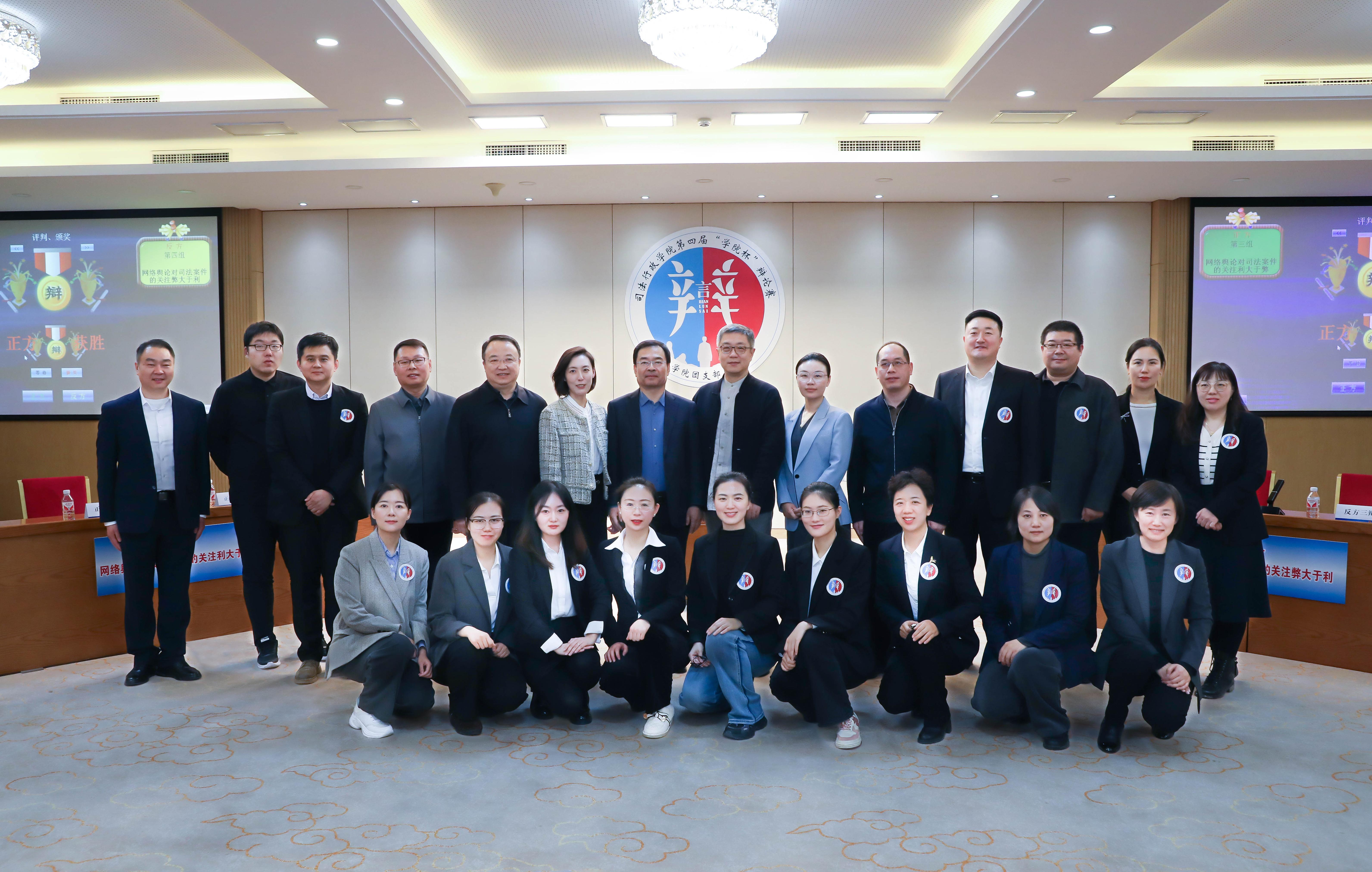 11月22日,司法行政學院四支強隊上演冠亞季軍爭奪戰(zhàn)。季軍爭奪賽和冠亞軍決賽,分別圍繞“慶祝傳統(tǒng)節(jié)日更應保持原汁原味還是更應勇于吐故納新”“網絡輿論對司法案件的關注利大于弊還是弊大于利”兩個主題進行了辯論。每場正、反兩方各上場四名隊員,設置立論陳詞、提問攻辯、攻辯小結、自由辯論及總結陳詞五個環(huán)節(jié)。