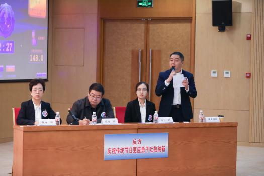 比賽評委、法治網副總編劉青在賽后點評時,語氣中帶著贊許:“正值小雪節(jié)氣,討論慶祝傳統(tǒng)節(jié)日的方式特別有意義。今天,正反雙方通過充分的論辯,不僅展示了他們對傳統(tǒng)文化的深刻理解,也體現(xiàn)了他們在傳承與創(chuàng)新之間尋求平衡的智慧”。