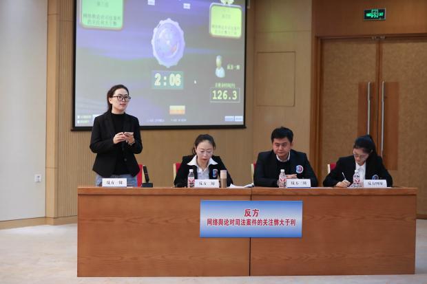 自由辯論環(huán)節(jié),正方明確主張:“法官在審理案件時,應基于內心的良知、對全案事實整體的把握以及對相關法律的深入分析作出判決。網絡輿論對司法案件的關注,有助于陽光司法”。