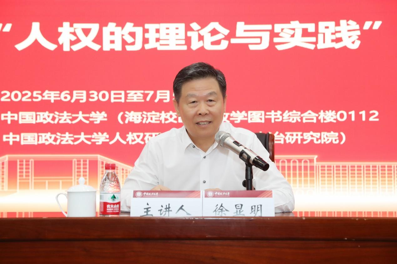 教育部高等學(xué)校法學(xué)類專業(yè)教學(xué)指導(dǎo)委員會主任委員、中國人權(quán)研究會首席專家、十三屆全國人大監(jiān)察和司法委員會副主任委員徐顯明以“關(guān)于人權(quán)的幾個基本問題”為題,作暑期班首場授課。徐顯明從法律、哲學(xué)、政治、歷史等多個角度出發(fā),深入闡述了人權(quán)是全人類的共同價值、人權(quán)的概念和層次、人權(quán)的發(fā)展階段、人權(quán)的歷史演變等內(nèi)容。