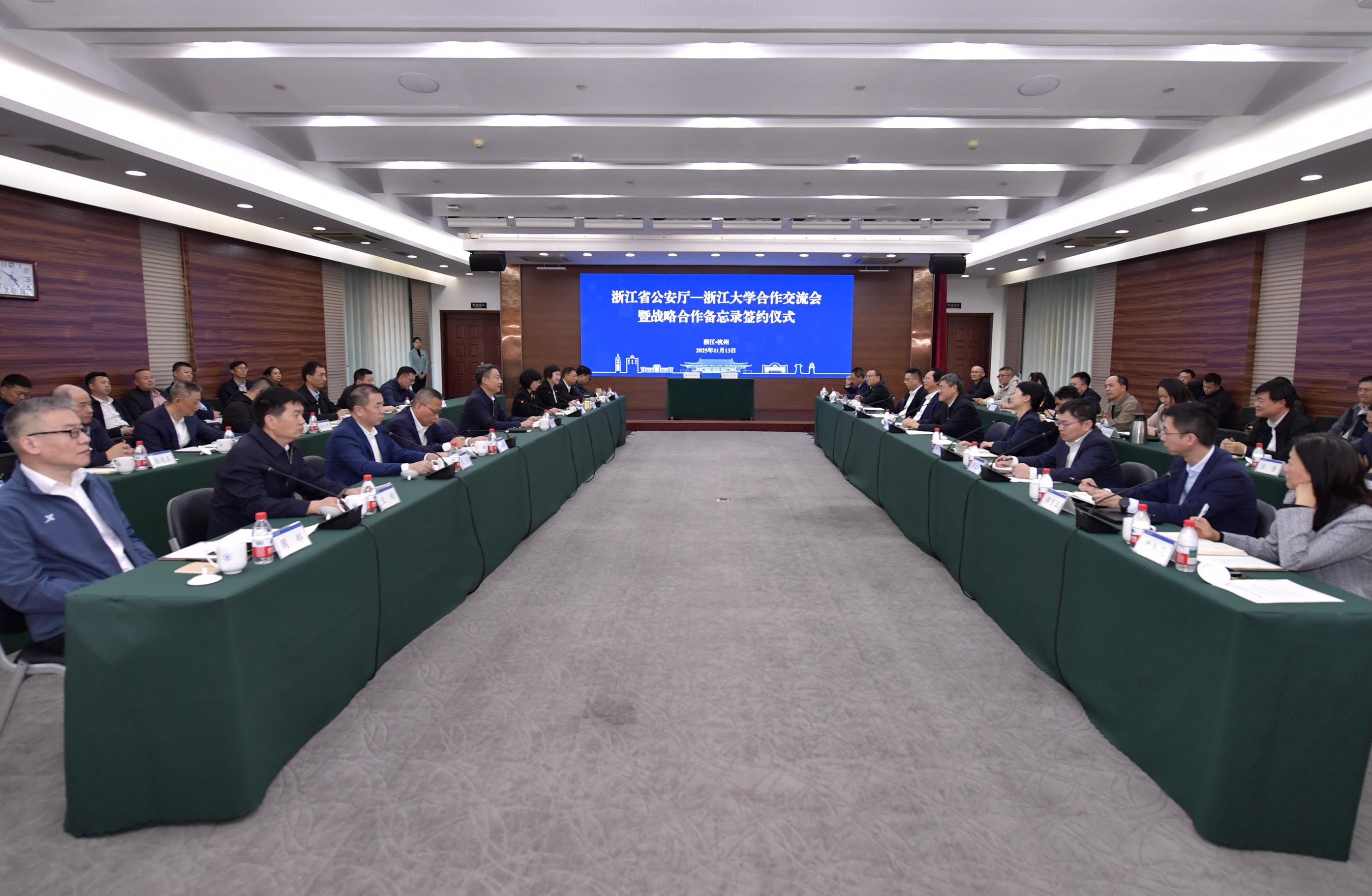 11月13日,浙江省公安廳—浙江大學(xué)合作交流會(huì)暨合作備忘錄簽約儀式在浙江大學(xué)舉行。浙江省副省長(zhǎng)、省公安廳廳長(zhǎng)楊青玖,浙江大學(xué)黨委書(shū)記任少波出席并講話。