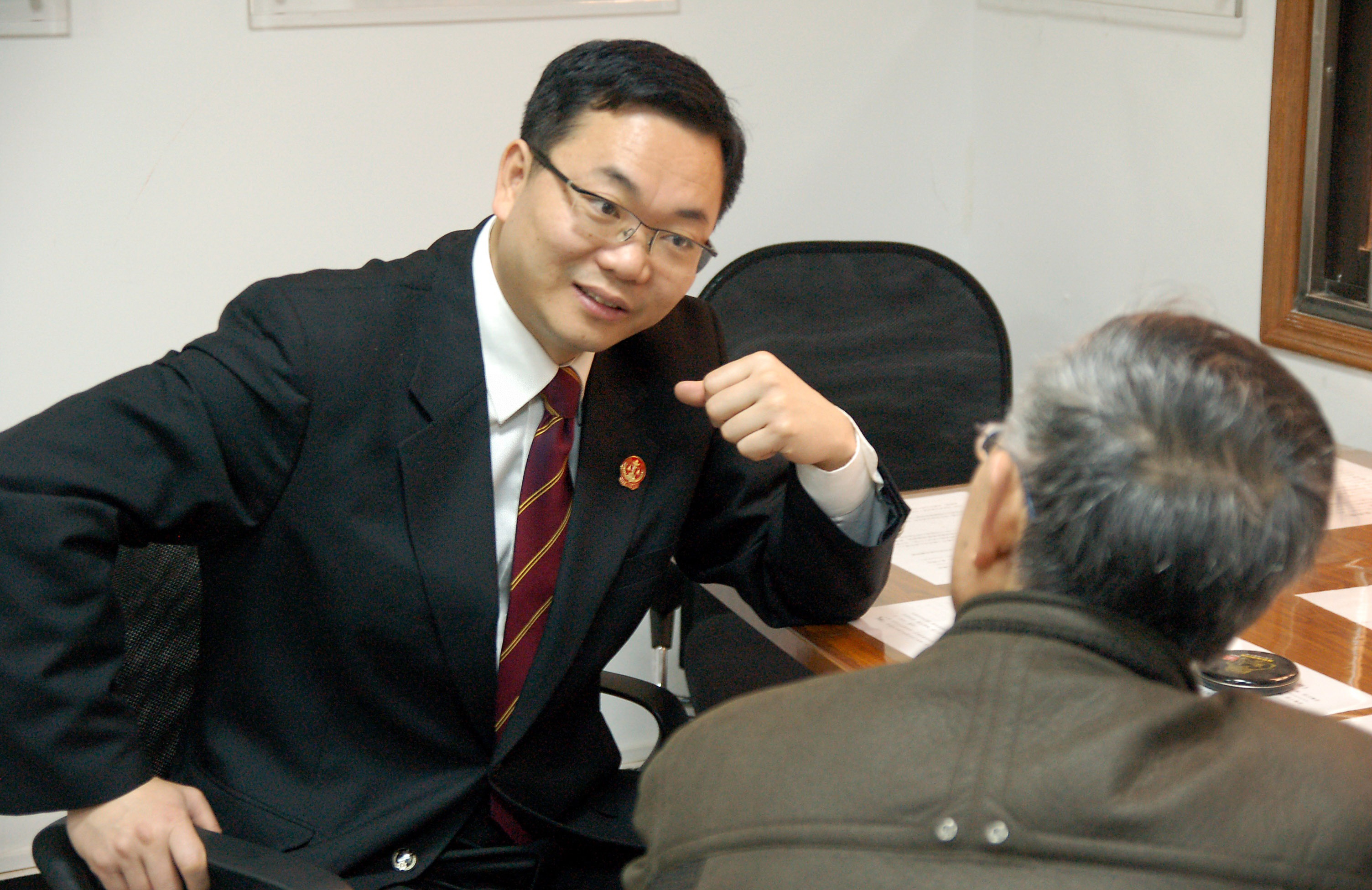 時(shí)任上海市長(zhǎng)寧區(qū)人民法院院長(zhǎng)的鄒碧華在接待起訴當(dāng)事人(2009年2月3日攝)?!?/p>