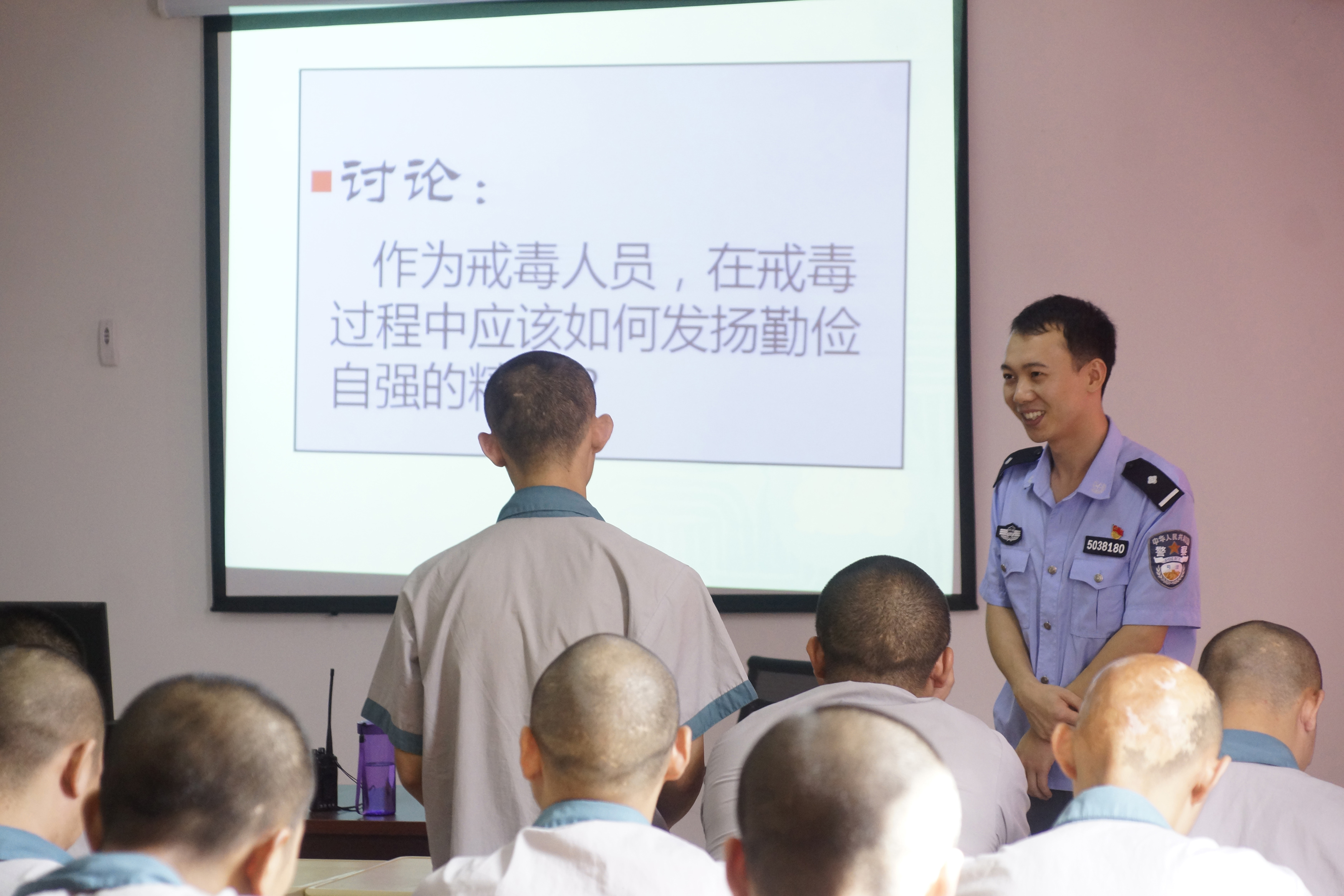 教育矯正中心,課堂化教學(xué)中,戒毒人員回答民警教師提問