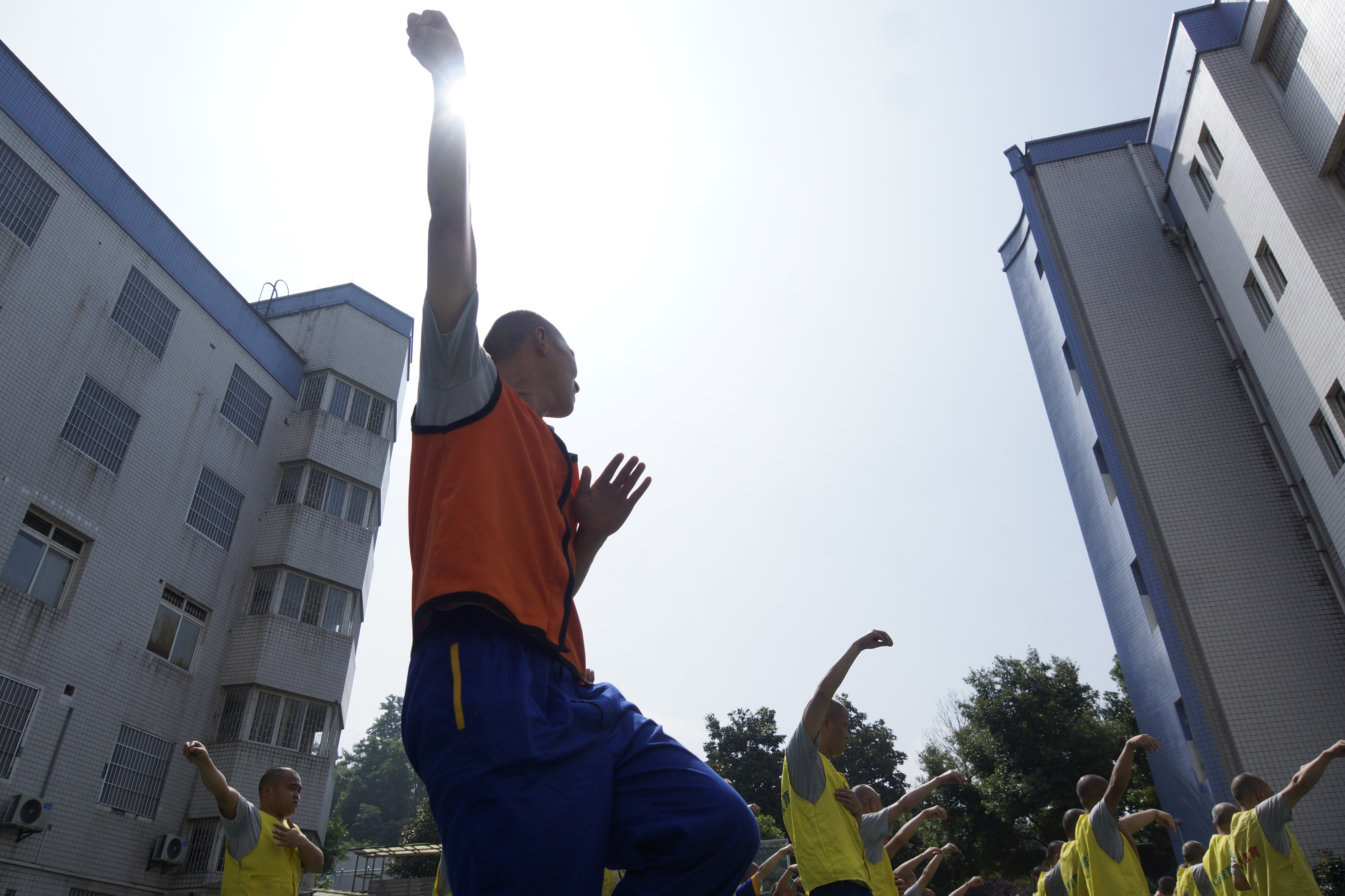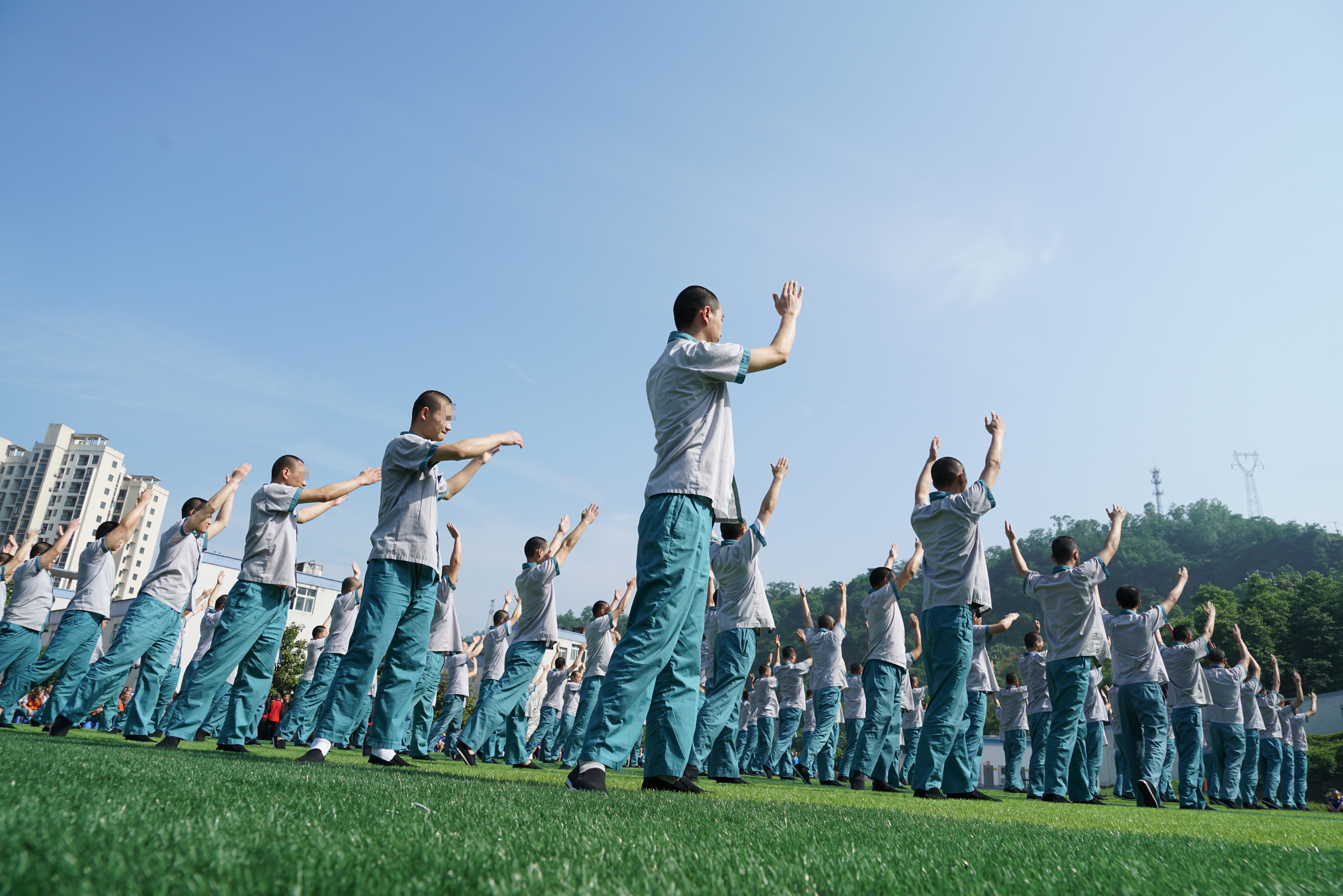 大隊(duì)籃球場,戒毒人員練習(xí)太極拳康復(fù)健身