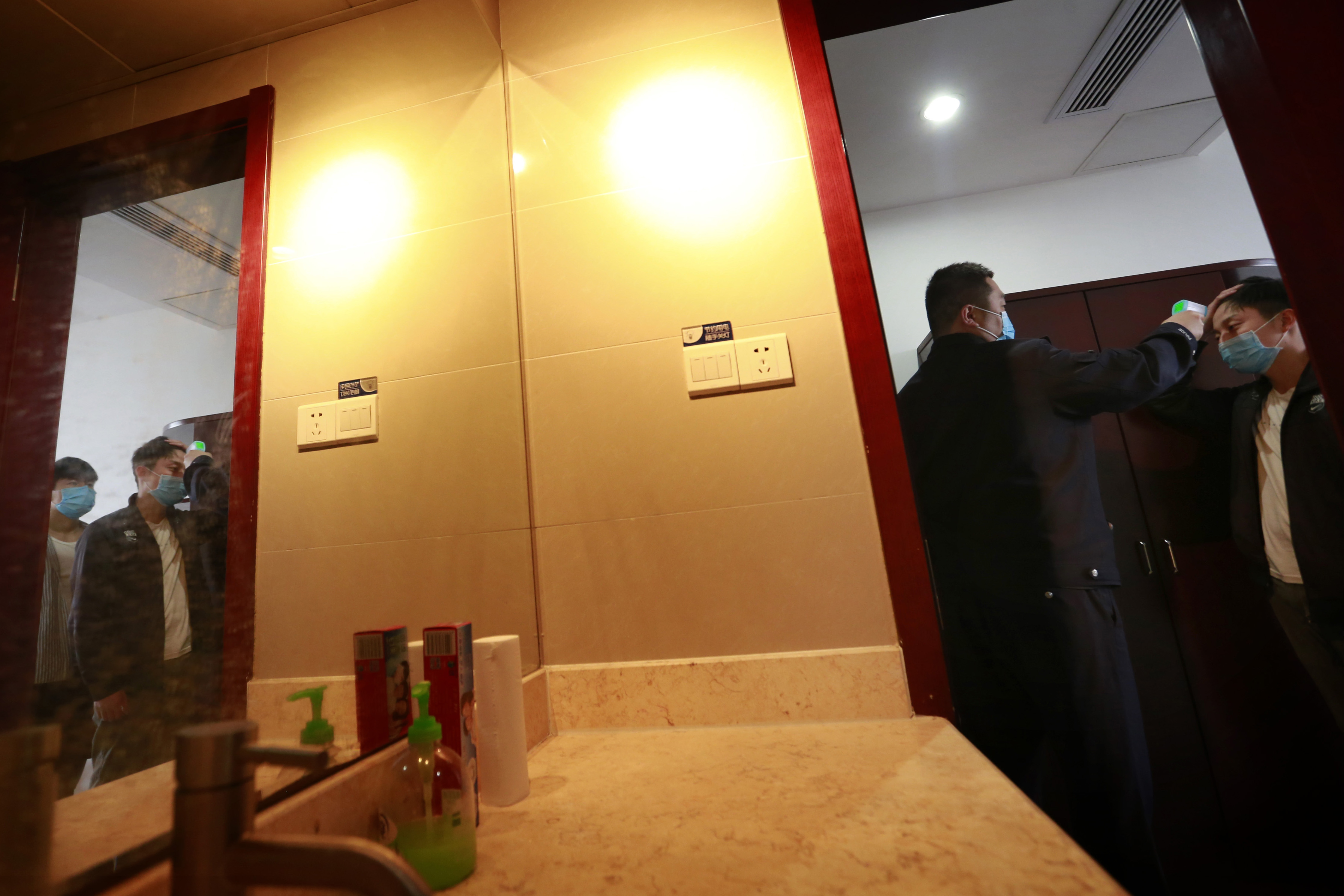 4月19日,第二批廣西來寧的6名務(wù)工村民來到南京港出入境邊防檢查站隔離點,第一件事就是測量體溫,他們將在這里度過14天的隔離觀察。