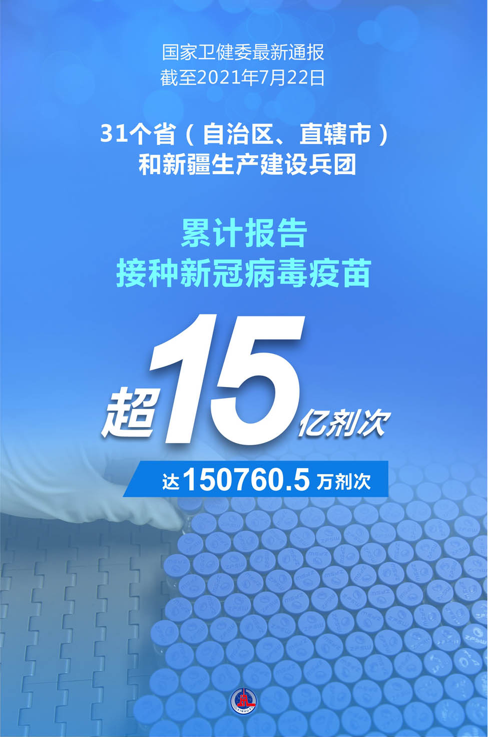 海報:31個省(自治區(qū)、直轄市)和新疆生產(chǎn)建設(shè)兵團累計報告接種新冠病毒疫苗超15億劑次