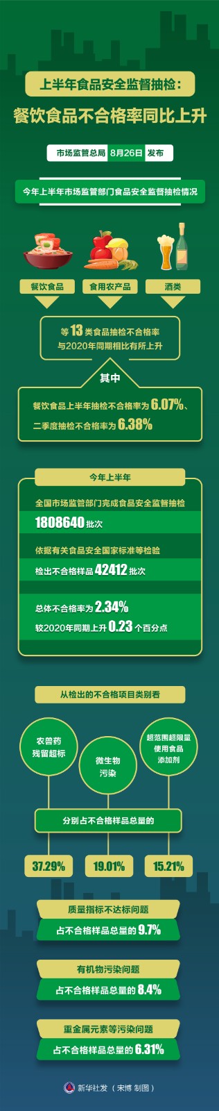 圖表:上半年食品安全監(jiān)督抽檢:餐飲食品不合格率同比上升