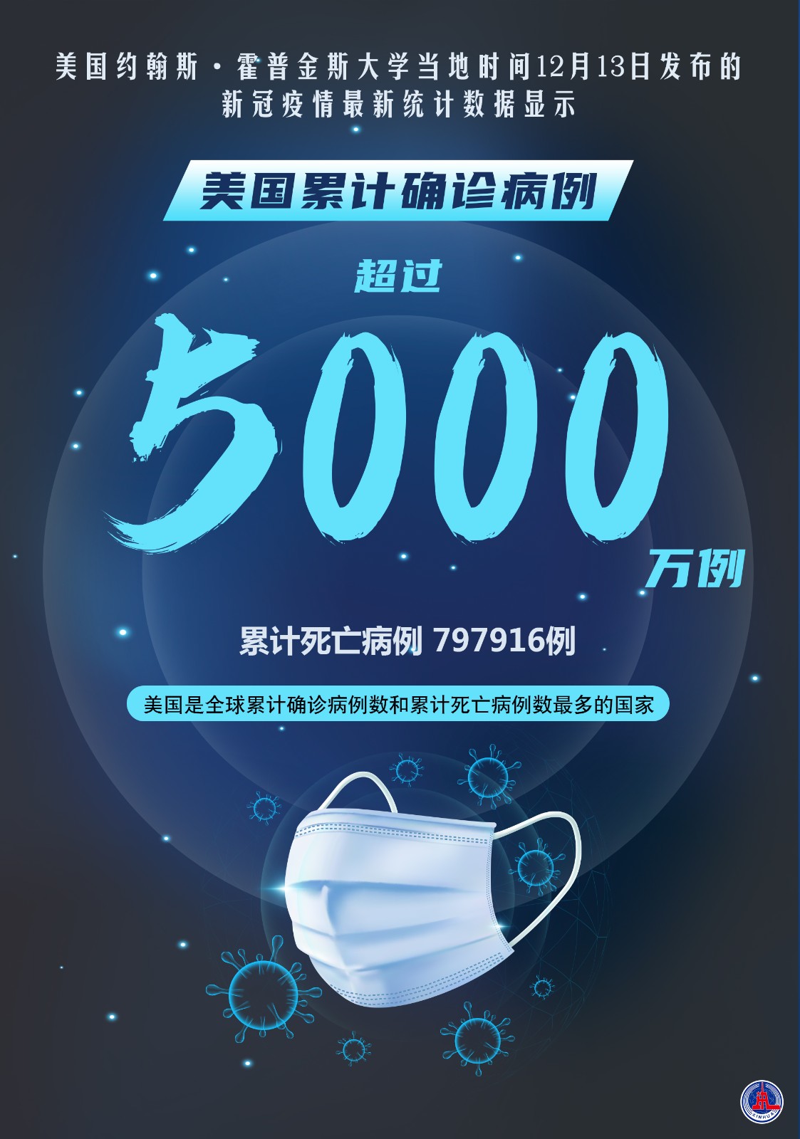 海報:約翰斯·霍普金斯大學(xué):美國累計新冠確診病例超5000萬例