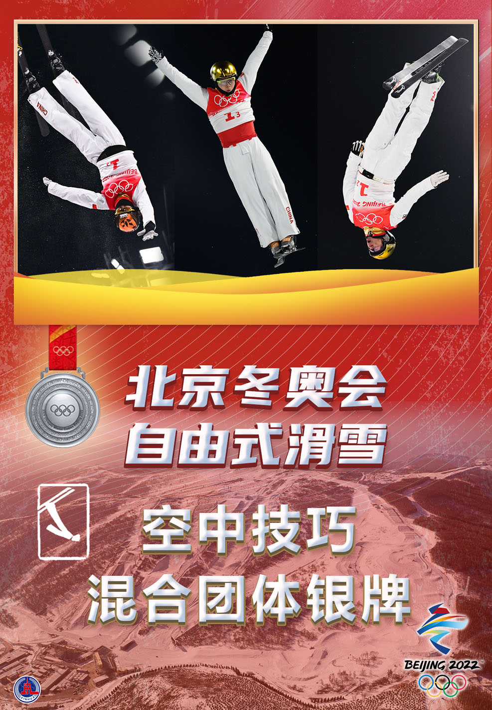 海報(bào):中國隊(duì)獲自由式滑雪空中技巧混合團(tuán)體銀牌