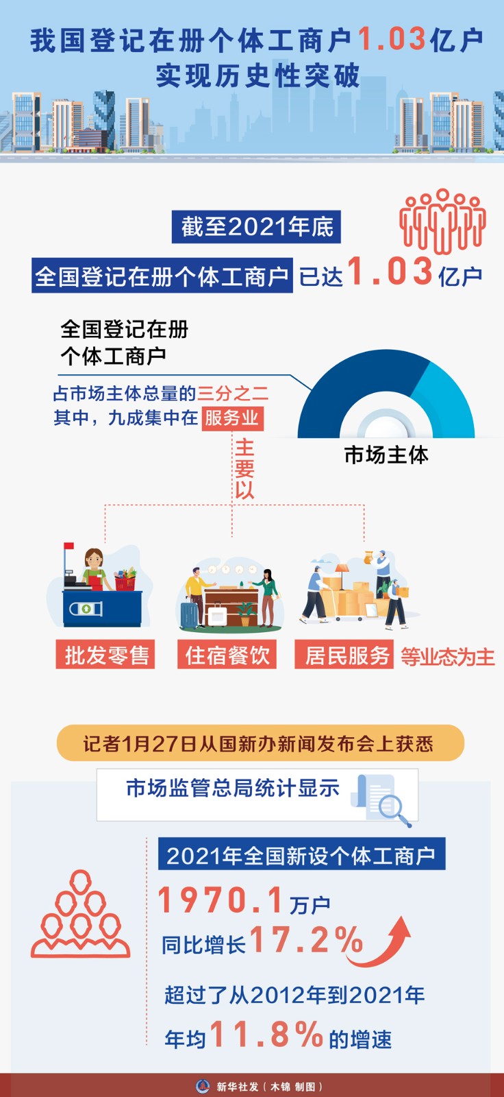 圖表:我國登記在冊個(gè)體工商戶1.03億戶 實(shí)現(xiàn)歷史性突破