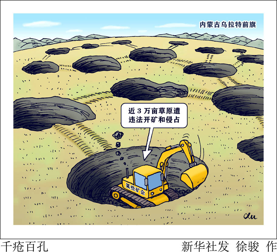 “新華視點(diǎn)”記者日前跟隨中央第三生態(tài)環(huán)境保護(hù)督察組督察發(fā)現(xiàn),內(nèi)蒙古自治區(qū)巴彥淖爾市烏拉特前旗礦山開采長期無序發(fā)展,近3萬畝草原遭違法開礦和侵占,使原本生態(tài)就脆弱的荒漠半荒漠草原遭受嚴(yán)重破壞。