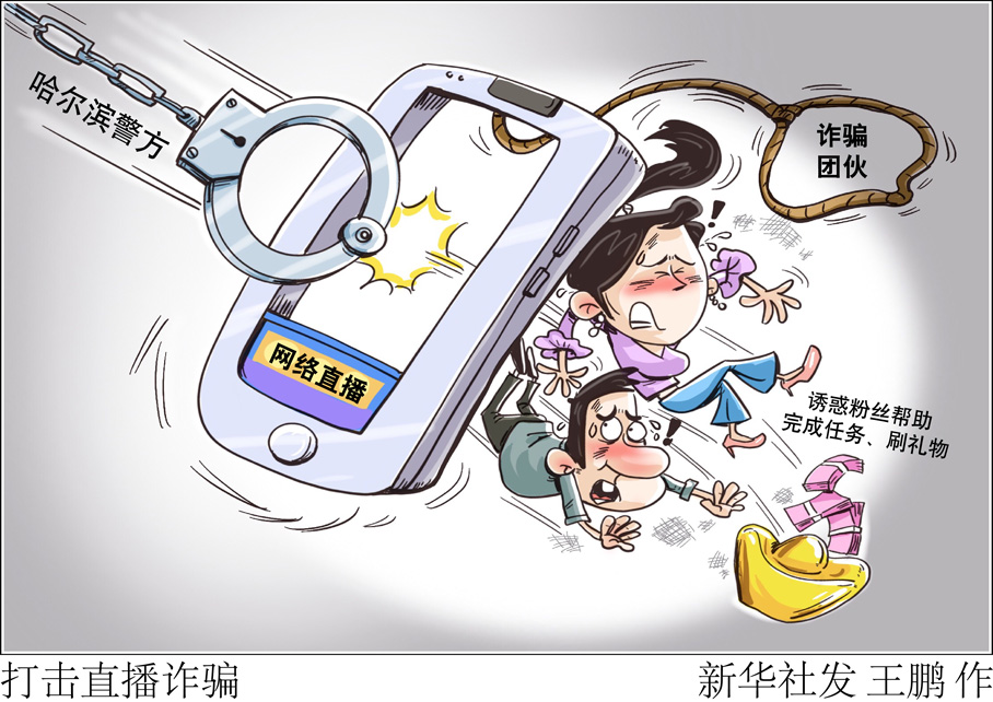 一網(wǎng)絡(luò)直播詐騙團伙以傳媒公司為掩護,招募大量女主播和男運營,誘惑粉絲幫助完成任務(wù)、刷禮物,從而實施詐騙。近日,哈爾濱警方一舉摧毀這個由38人組成的詐騙團伙。
