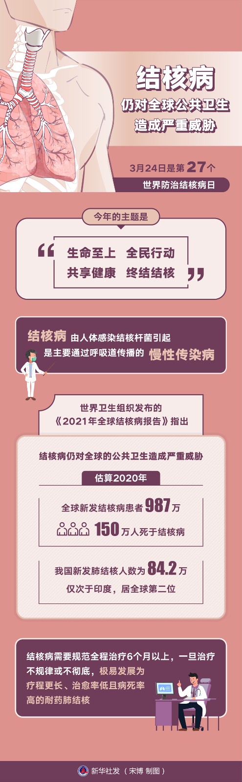 3月24日是第27個世界防治結(jié)核病日,今年的主題是“生命至上 全民行動 共享健康 終結(jié)結(jié)核”。