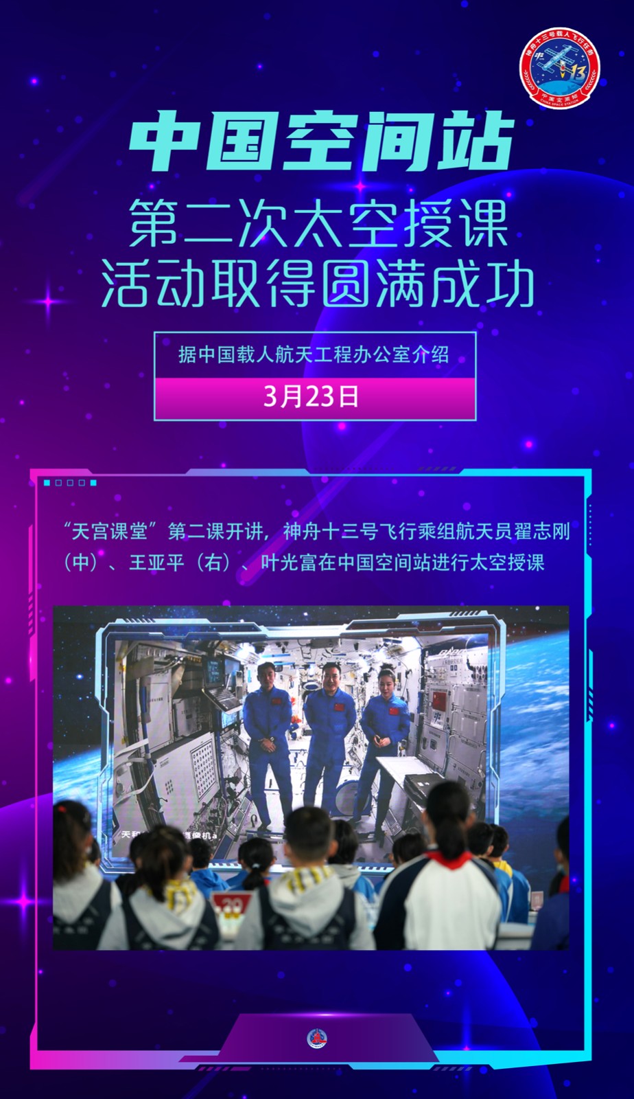 海報:中國空間站第二次太空授課活動取得圓滿成功