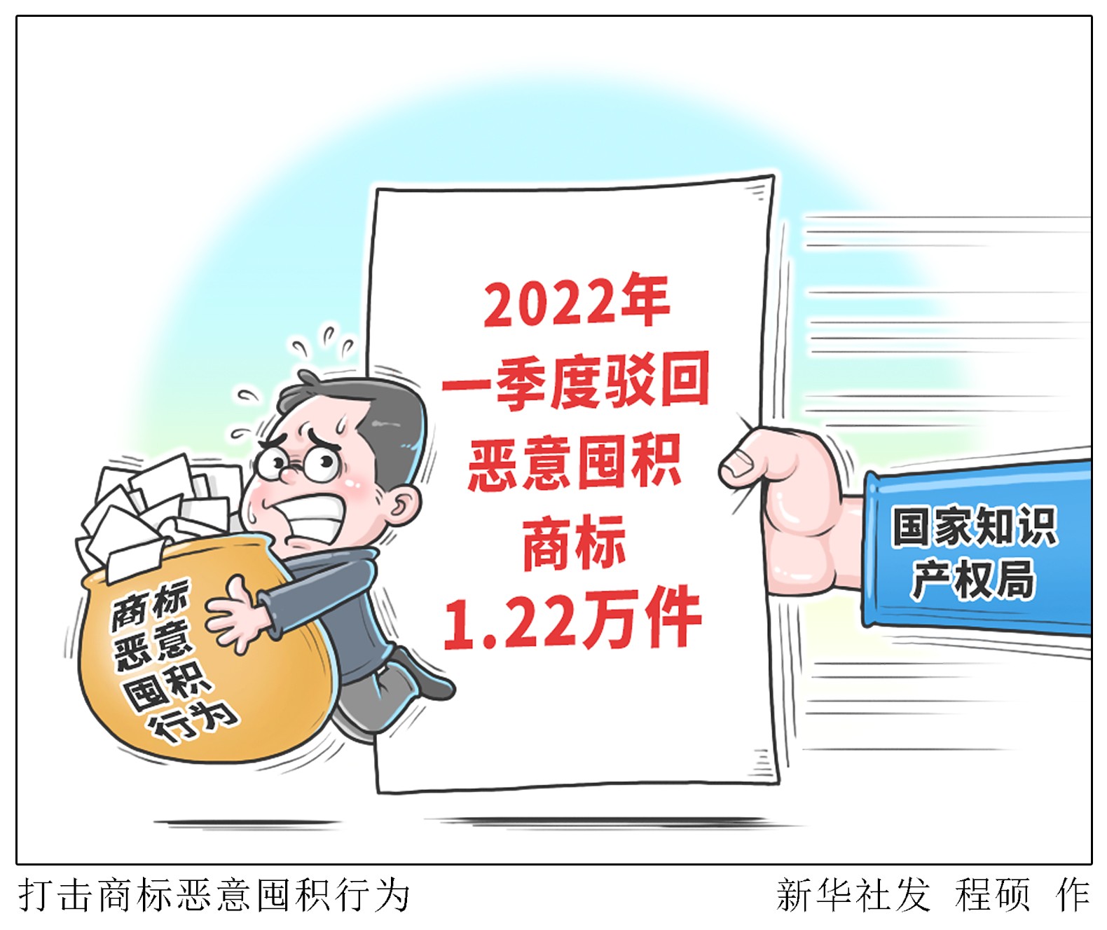 國(guó)家知識(shí)產(chǎn)權(quán)局副局長(zhǎng)何志敏4月24日在國(guó)新辦舉行的2021年中國(guó)知識(shí)產(chǎn)權(quán)發(fā)展?fàn)顩r新聞發(fā)布會(huì)上介紹,今年第一季度,國(guó)家知識(shí)產(chǎn)權(quán)局在審查程序中駁回惡意囤積商標(biāo)1.22萬件,駁回惡意搶注商標(biāo)1628件。