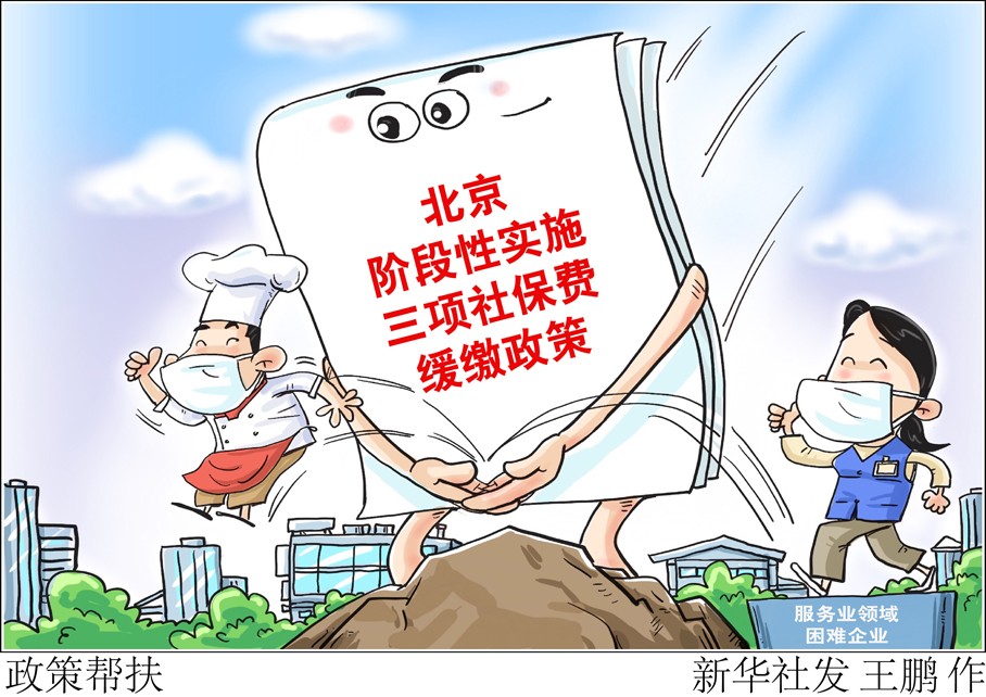 為幫助服務(wù)業(yè)領(lǐng)域困難企業(yè)渡過難關(guān)、恢復(fù)發(fā)展,北京市人力資源和社會保障局與國家稅務(wù)總局北京市稅務(wù)局、北京市財(cái)政局等九部門5月9日聯(lián)合發(fā)布通告,對在北京市參保繳費(fèi),屬于餐飲、零售、旅游、民航、公路鐵路運(yùn)輸行業(yè)的企業(yè),階段性實(shí)施企業(yè)職工基本養(yǎng)老保險(xiǎn)、失業(yè)保險(xiǎn)、工傷保險(xiǎn)三項(xiàng)社保費(fèi)緩繳政策。