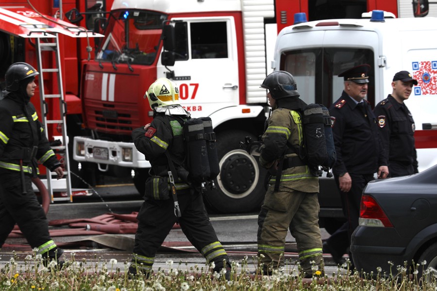6月3日,在俄羅斯首都莫斯科,救援人員在火災現(xiàn)場工作。