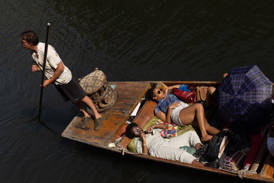 6月17日,人們在英國倫敦乘游船享受陽光。