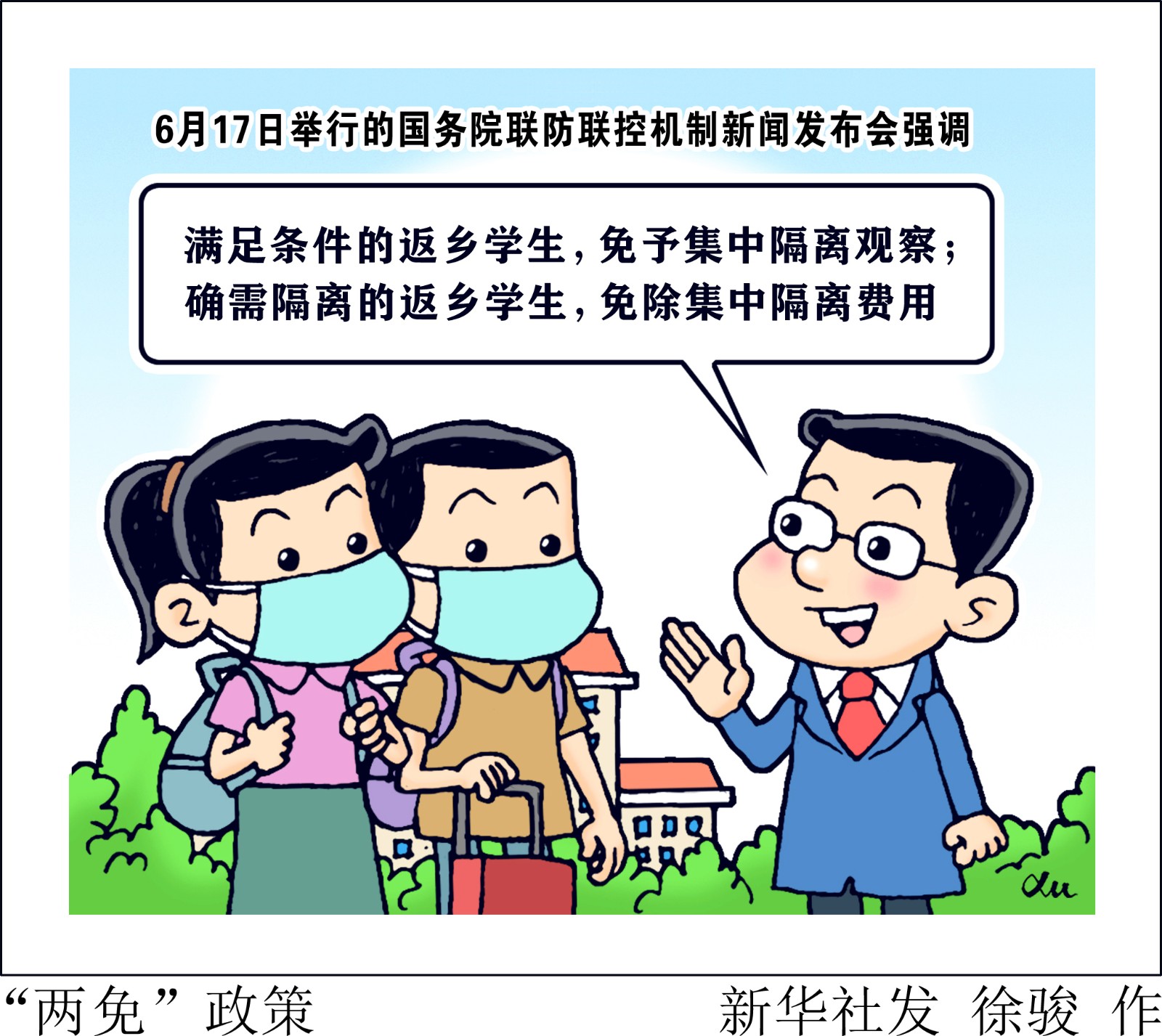暑期即將來臨,新冠肺炎疫情下如何保證高校學生順利返鄉(xiāng)?6月17日舉行的國務院聯(lián)防聯(lián)控機制新聞發(fā)布會強調(diào),滿足條件的返鄉(xiāng)學生免予集中隔離觀察,確需隔離的返鄉(xiāng)學生免除集中隔離費用;各地要逐級傳達、落實學生離校返鄉(xiāng)政策,不得層層加碼。