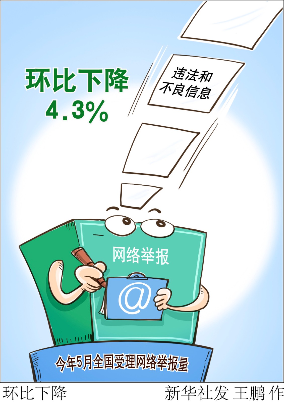 中央網(wǎng)信辦(國家互聯(lián)網(wǎng)信息辦公室)違法和不良信息舉報中心公布的統(tǒng)計數(shù)據(jù)顯示,今年5月,全國各級網(wǎng)絡舉報部門受理舉報1534.3萬件,環(huán)比下降4.3%、同比增長3.9%。
