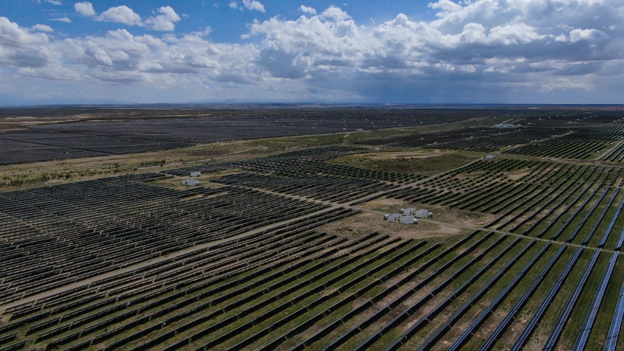 近年來,青海省海南藏族自治州依托土地資源和太陽能資源優(yōu)勢,著力推進新能源發(fā)電項目落地。截至目前,在位于共和縣的海南州綠色產(chǎn)業(yè)發(fā)展園區(qū),光伏、風(fēng)電、光熱新能源裝機容量超過2000萬千瓦。按測算,通過新能源發(fā)電這里每年可節(jié)約標(biāo)準(zhǔn)煤736.96萬噸,減排二氧化碳2237.2萬噸。