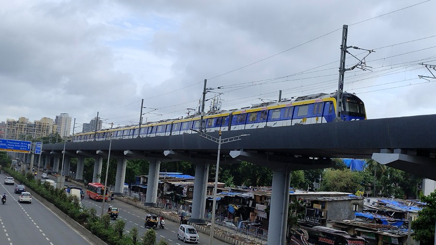 這是6月22日在印度孟買北部拍攝的地鐵項目部分路段(手機(jī)拍攝)。