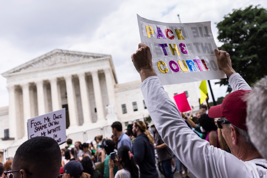 6月24日,墮胎權(quán)支持者在美國(guó)首都華盛頓的聯(lián)邦最高法院外抗議。