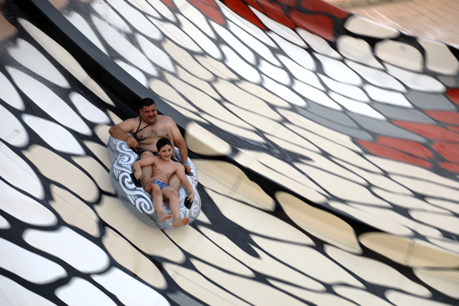 6月20日,一對父子在伊拉克巴格達的一處泳池休閑消夏。