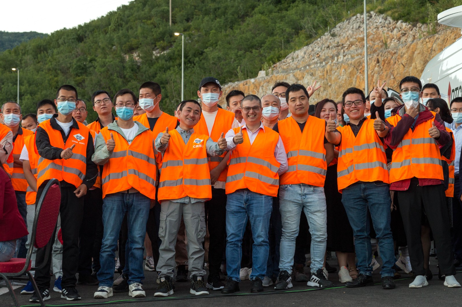 7月13日,在黑山首都波德戈里察,中企員工出席黑山南北高速公路優(yōu)先段通車儀式。