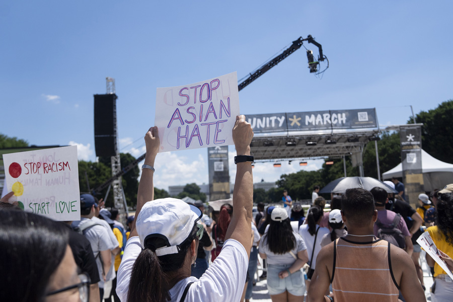 6月25日,在美國首都華盛頓,示威者參加反亞裔仇恨集會(huì)。