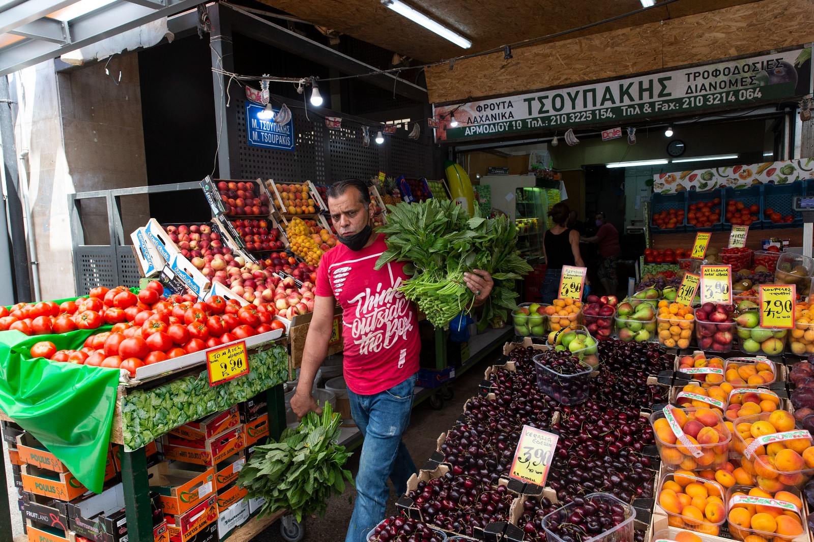 7月8日,一名攤販在希臘雅典一家店鋪工作。