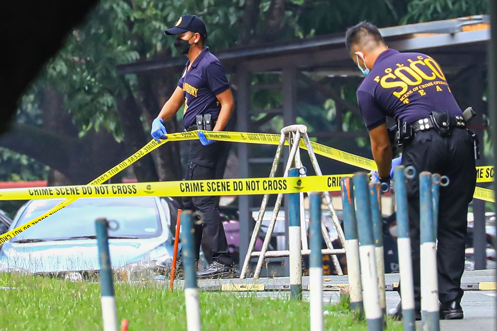 7月24日,菲律賓警察在馬尼拉大區(qū)奎松市的雅典耀大學槍擊事件現場工作。