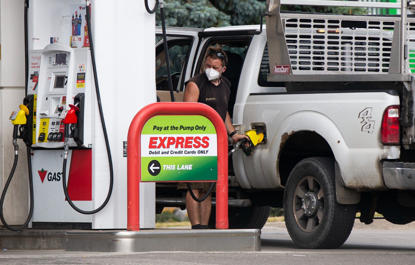 7月20日,一名男子在加拿大安大略省米西索加一處加油站加油。