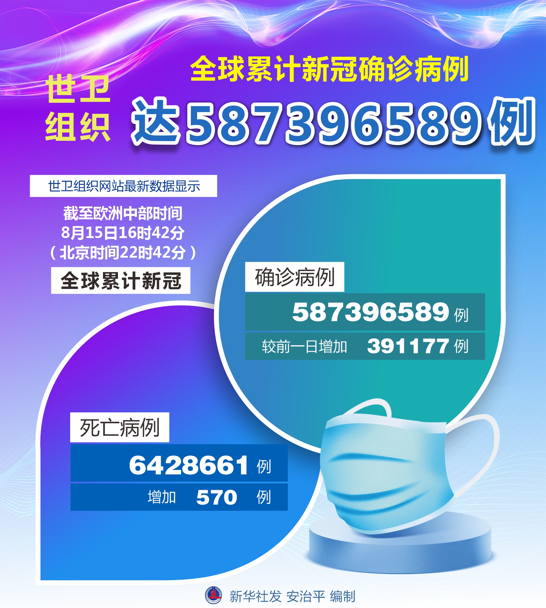 世衛(wèi)組織:全球累計(jì)新冠確診病例達(dá)587396589例